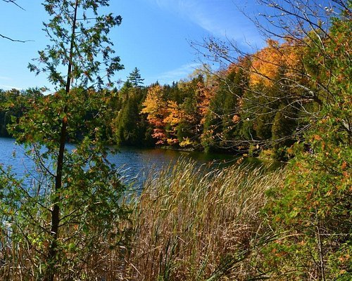 Pristine lake, hiking trails, Indigenous heritage, boardwalks, and scenic nature views.